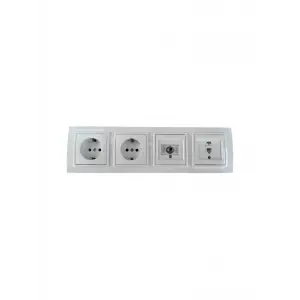 Elbi Zena Beyaz Dörtlü Set Topraklı Priz + Topraklı Priz + Uydu Tv Prizi + Nümeris Cat3 Rj11